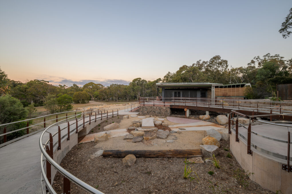 Drawing inspiration from Girraween’s striking granite formations, native flora and rich cultural narratives, we worked with the Kambuwal Aboriginal Corporation for Culture, Heritage, and Land. Our approach aimed to embed cultural meaning throughout the design. This is seen in the hand-laid stone walls, sandblasted carpet python motifs, and endemic plantings that blend seamlessly with the surrounding bushland.